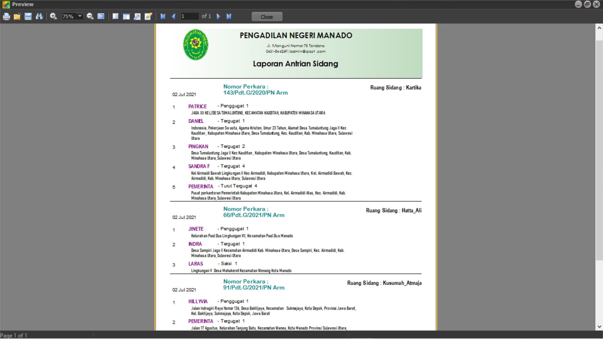 Antrian Sidang untuk digunakan di Kantor Pengadilan
