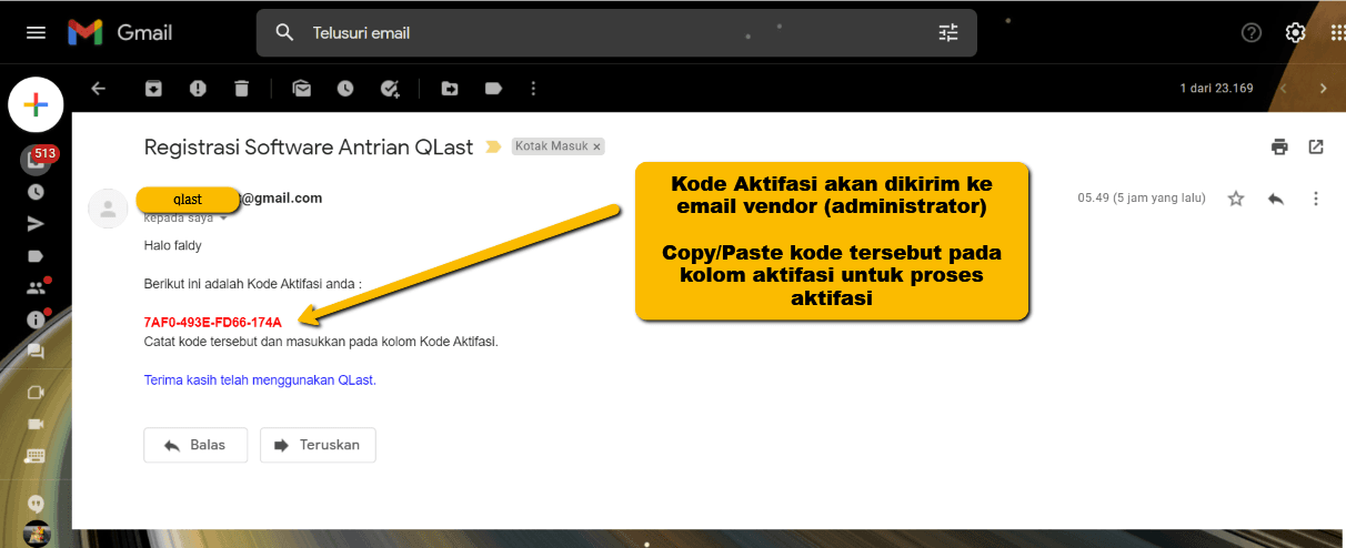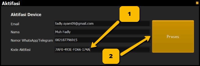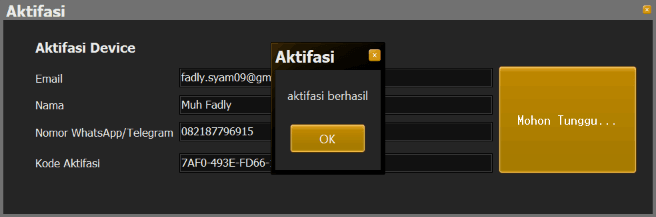Penting : kode aktifasi untuk setiap email yang terdaftar tidak berubah dan dapat anda pergunakan seterusnya untuk aktifasi di perangkat / unit / kantor lain (jumlah PC klien tidak terbatas).