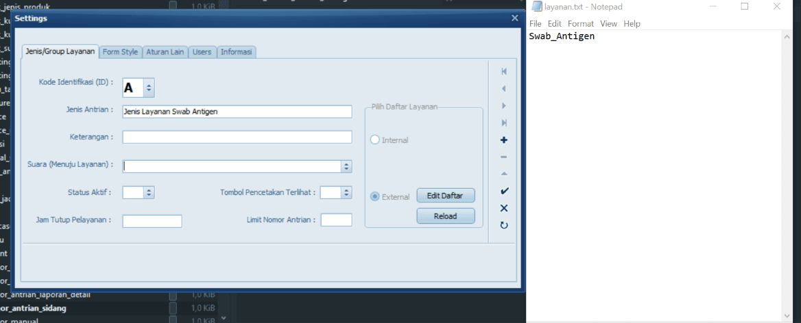 - Apabila editor layanan untuk jenis layanan eksternal (bukan bawaan aplikasi) berjalan dari beberapa PC, maka file layanan.txt harus tersalin di seluruh PC yang akan menggunakan pengaturan jenis layanan tersebut.
